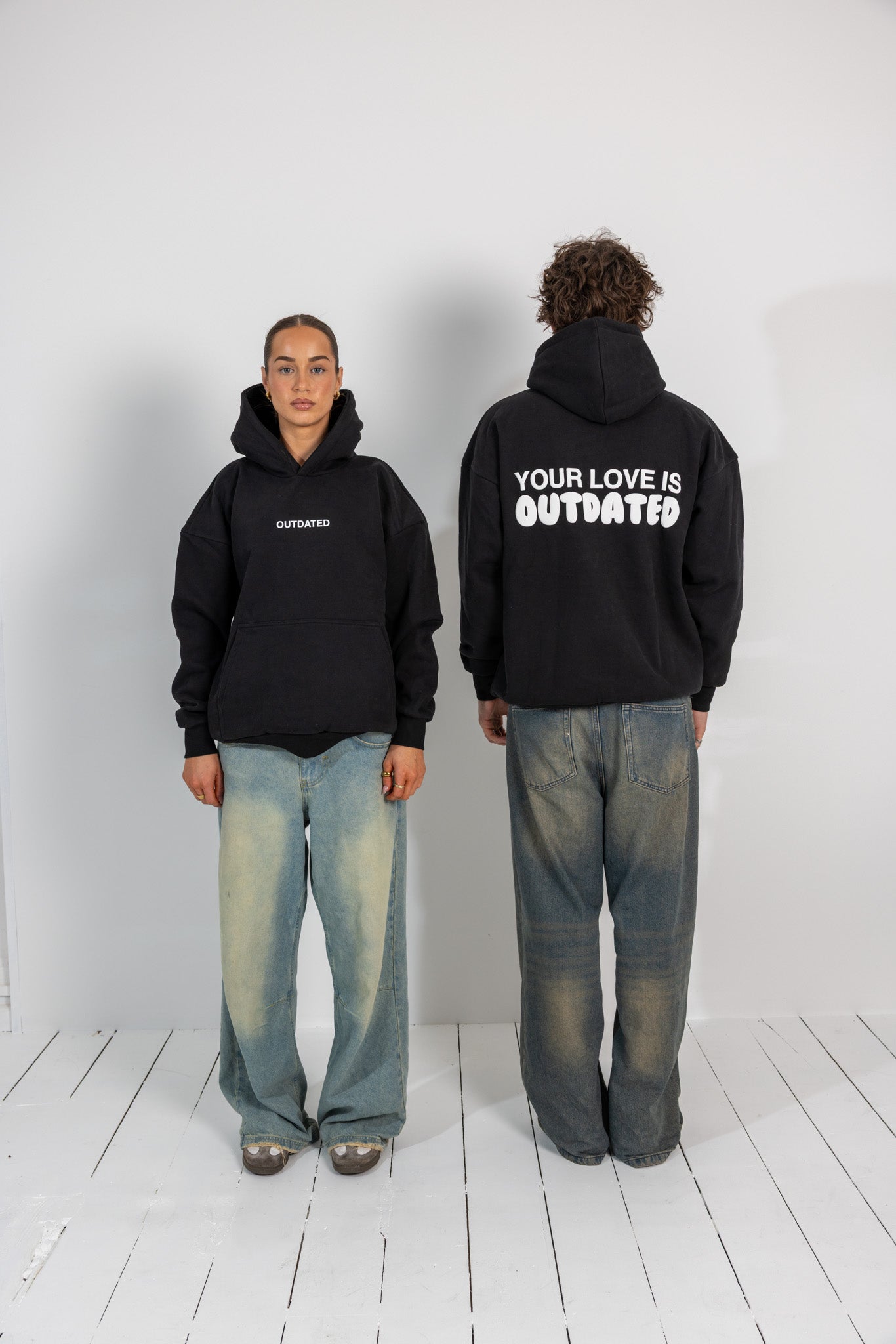 A high-demand staple, this standard-fit premium cotton-poly blend hoodie features a kangaroo pouch pocket and the iconic ‘Your Love is Outdated’ design on the back. Comfort meets timeless style—don’t miss out.
