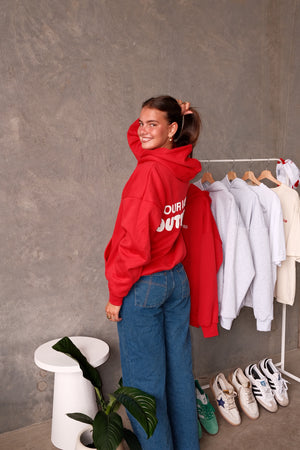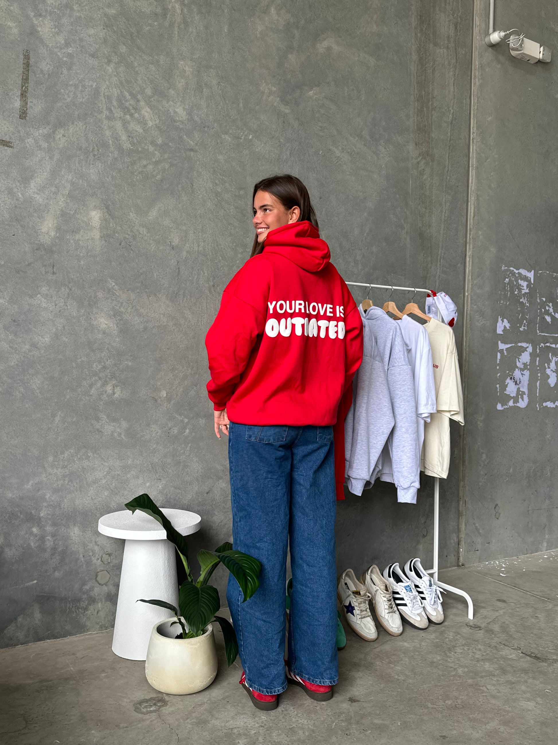 A high-demand staple, this standard-fit premium cotton-poly blend hoodie features a kangaroo pouch pocket and the iconic ‘Your Love is Outdated’ design on the back. Comfort meets timeless style—don’t miss out.