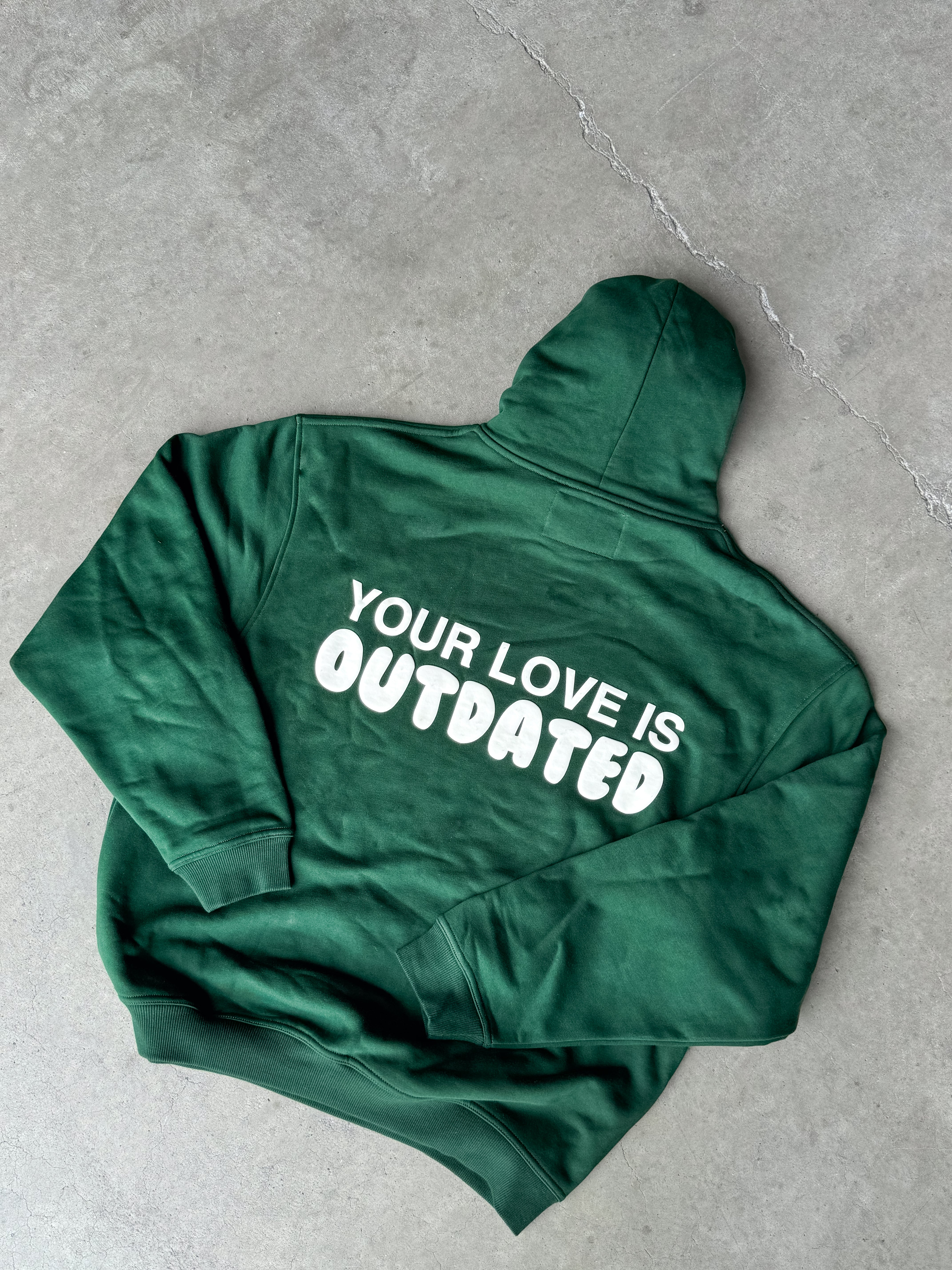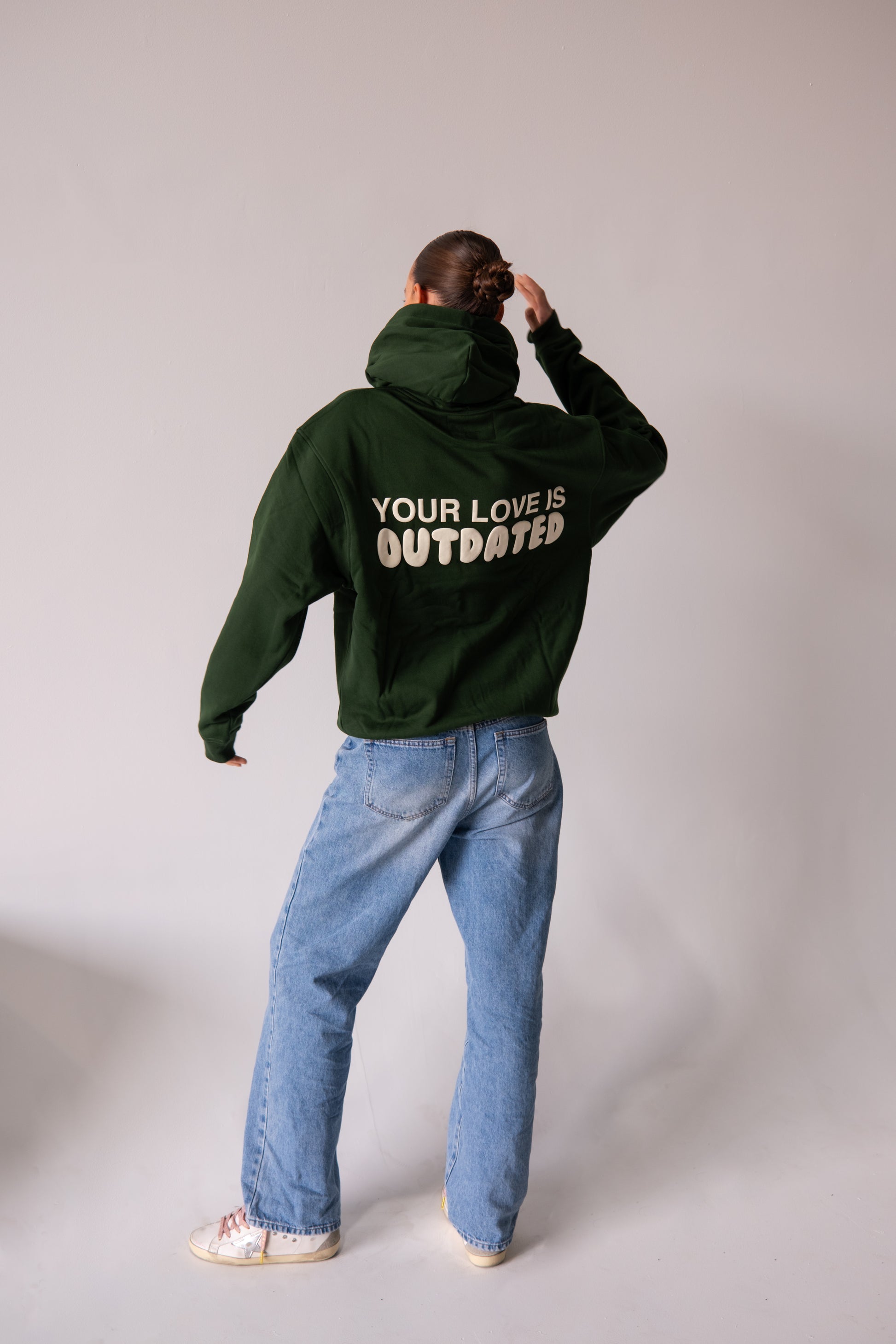 A high-demand staple, this standard-fit premium cotton-poly blend hoodie features a kangaroo pouch pocket and the iconic ‘Your Love is Outdated’ design on the back. Comfort meets timeless style—don’t miss out.