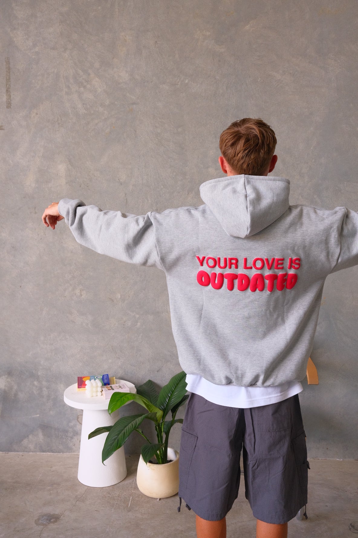 A high-demand staple, this standard-fit premium cotton-poly blend hoodie features a kangaroo pouch pocket and the iconic ‘Your Love is Outdated’ design on the back. Comfort meets timeless style—don’t miss out.