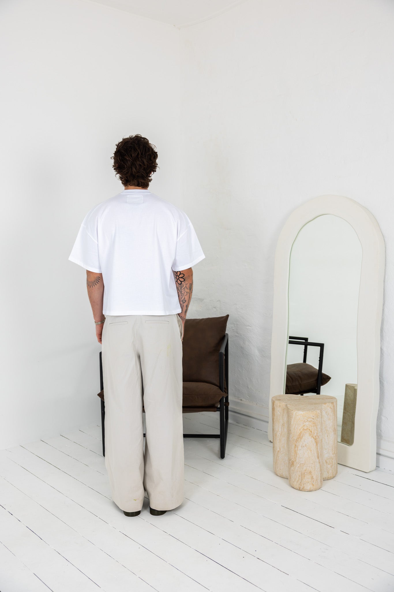 With its cropped fit and relaxed drop shoulders, this tee delivers a sleek, contemporary silhouette. Perfect for effortless layering or standing out on its own, it’s finished with a clean, minimalist back for a balanced and versatile look.