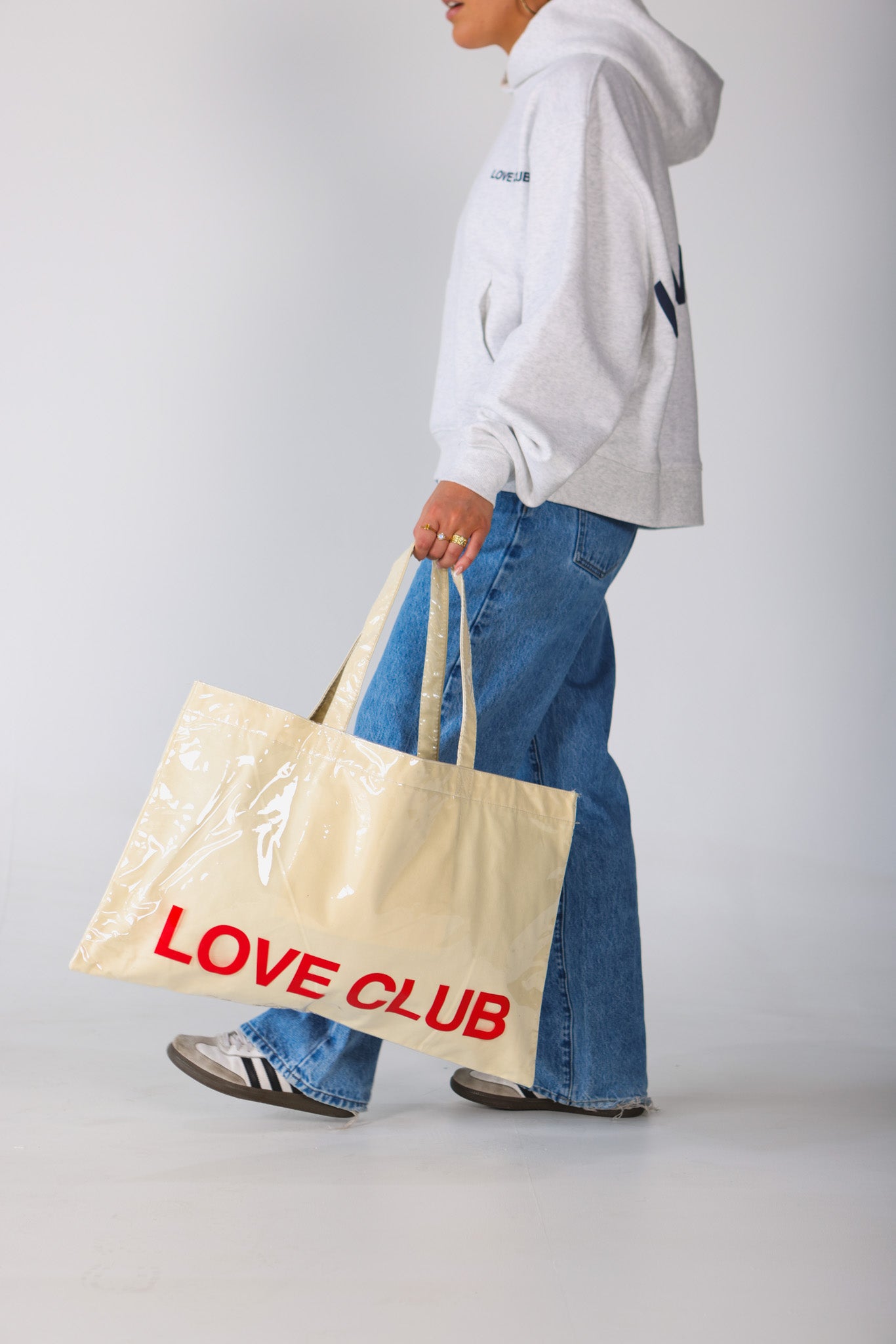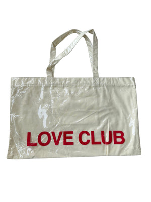 Design: Features the Love Club logo on one side and the Outdated logo on the other