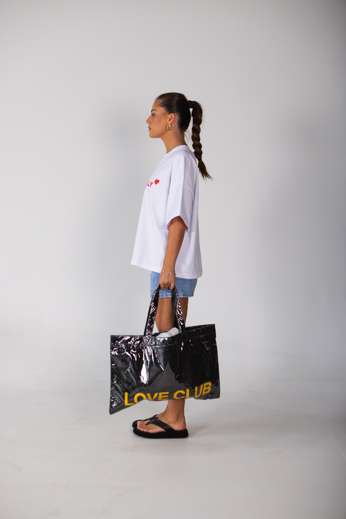 Design: Features the Love Club logo on one side and the Outdated logo on the other