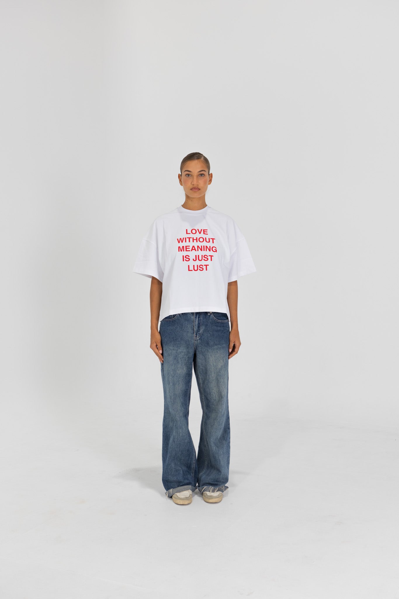 With its cropped fit and relaxed drop shoulders, this tee delivers a sleek, contemporary silhouette. Perfect for effortless layering or standing out on its own, it’s finished with a clean, minimalist back for a balanced and versatile look.