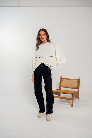With its cropped fit and relaxed drop shoulders, this tee delivers a sleek, contemporary silhouette. Perfect for effortless layering or standing out on its own for a balanced and versatile look.