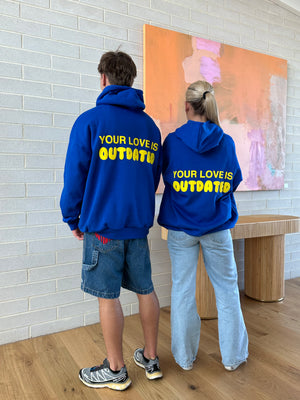A high-demand staple, this standard-fit premium cotton-poly blend hoodie features a kangaroo pouch pocket and the iconic ‘Your Love is Outdated’ design on the back. Comfort meets timeless style—don’t miss out.