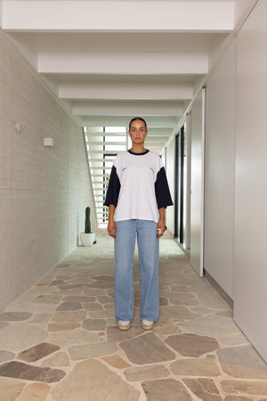 With its cropped fit and relaxed drop shoulders, this tee delivers a sleek, contemporary silhouette. Perfect for effortless layering or standing out on its own for a balanced and versatile look.