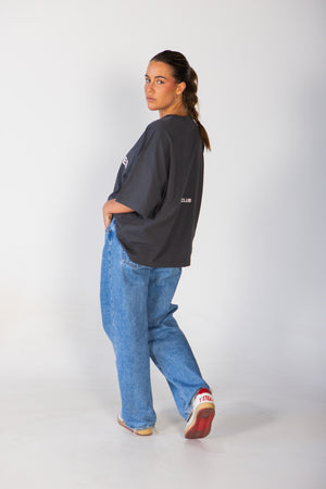 With its cropped fit and relaxed drop shoulders, this tee delivers a sleek, contemporary silhouette. Perfect for effortless layering or standing out on its own for a balanced and versatile look.