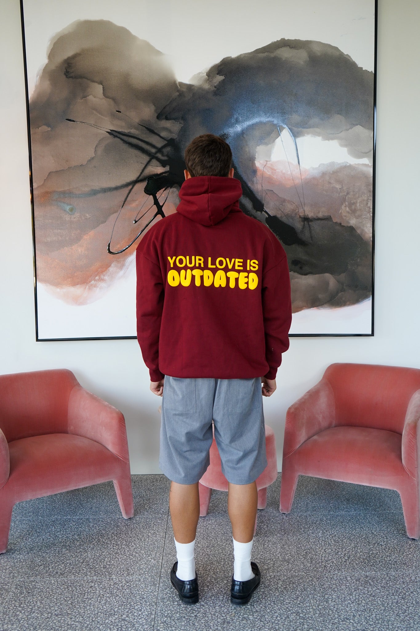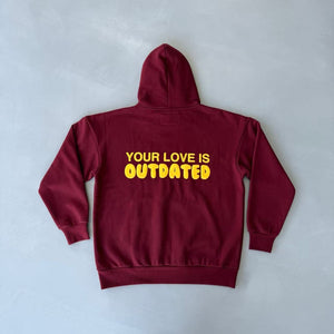 A high-demand staple, this standard-fit premium cotton-poly blend hoodie features a kangaroo pouch pocket and the iconic ‘Your Love is Outdated’ design on the back. Comfort meets timeless style—don’t miss out.