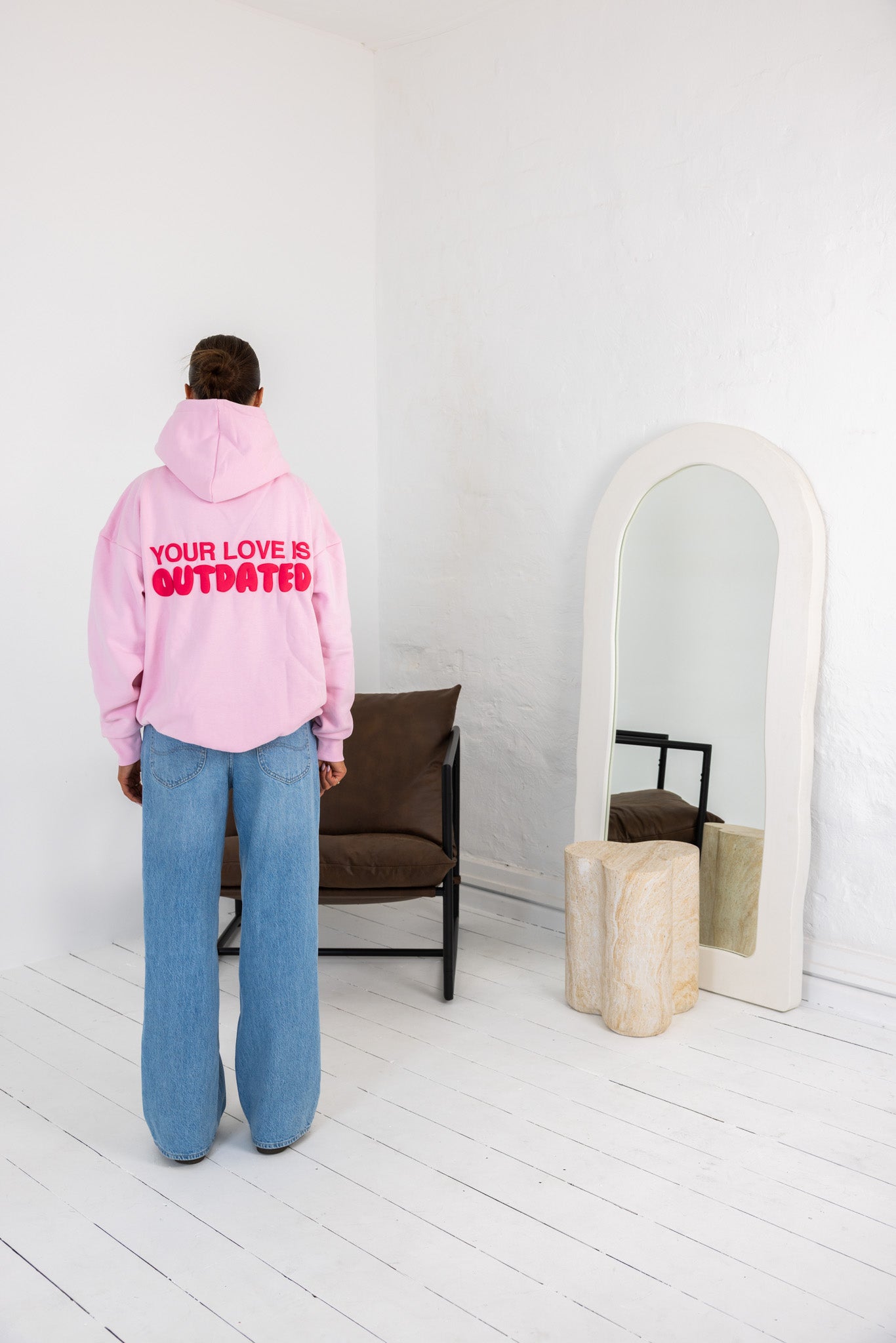 A high-demand staple, this standard-fit premium cotton-poly blend hoodie features a kangaroo pouch pocket and the iconic ‘Your Love is Outdated’ design on the back. Comfort meets timeless style—don’t miss out.