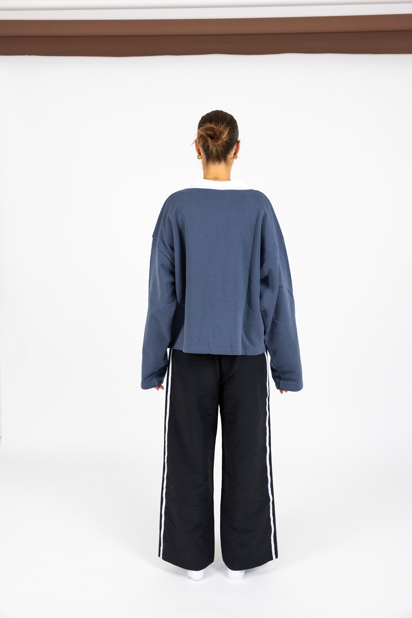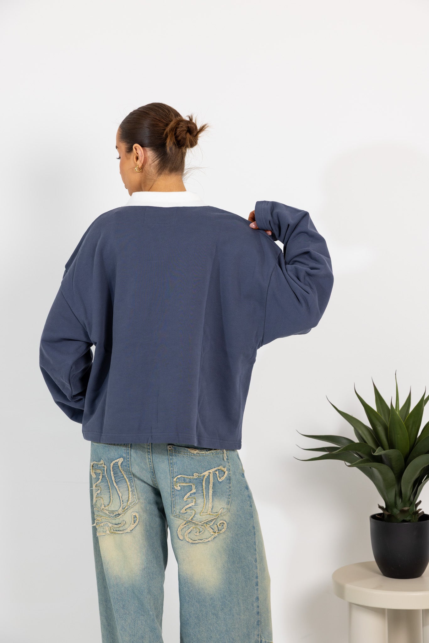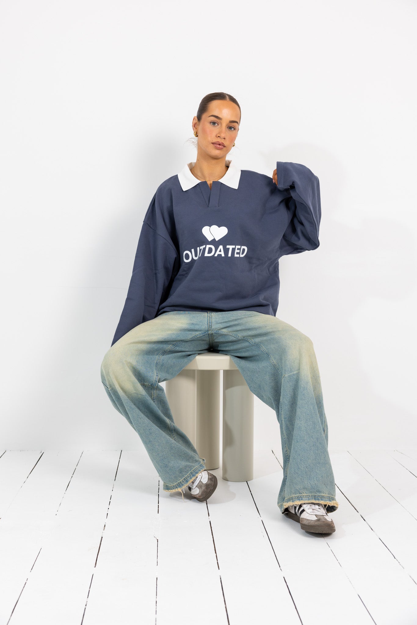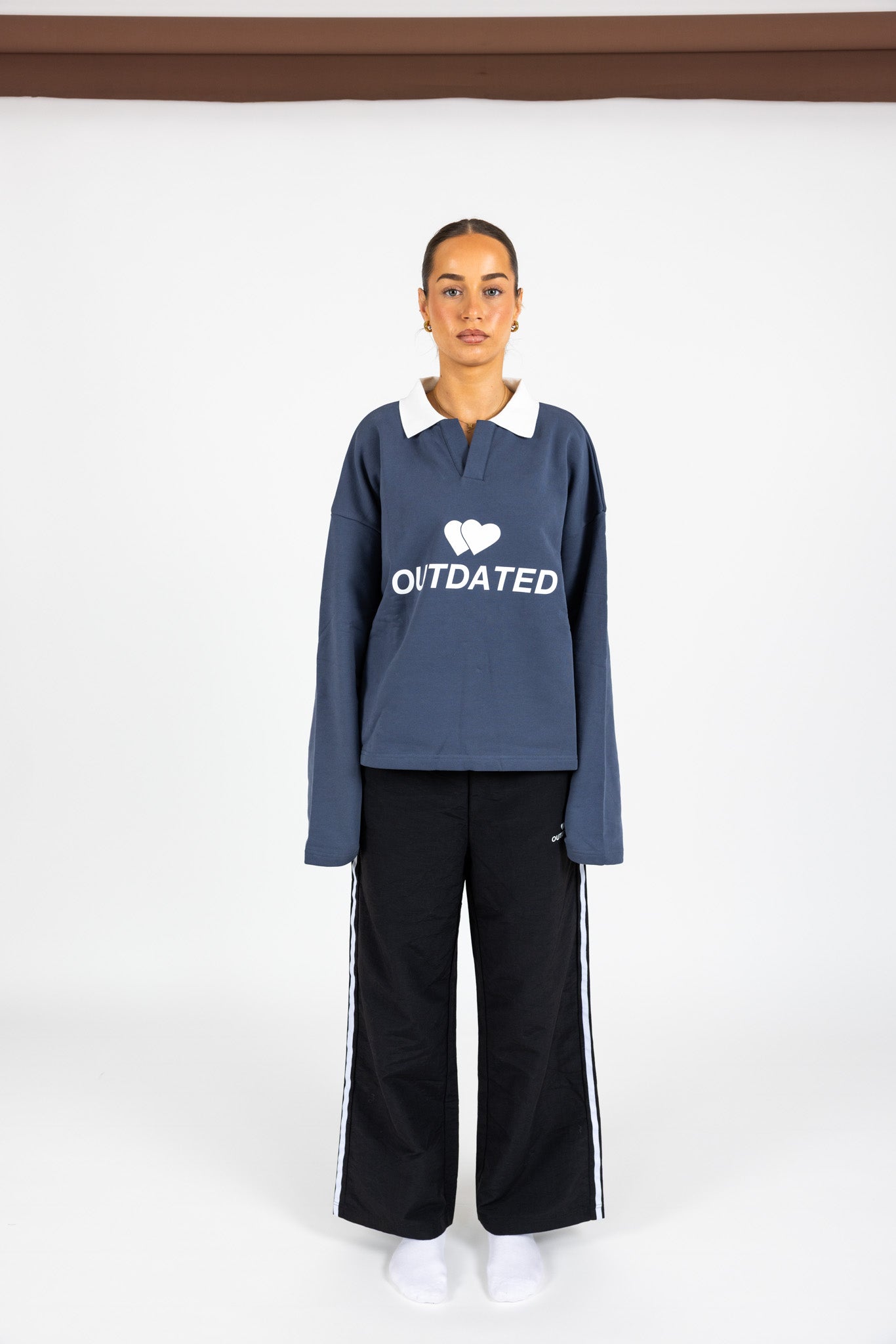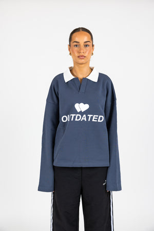 Our Cropped Rugby Polo in Blue brings a fresh twist to a classic. Featuring a contrast white collar, embroidered Outdated branding, and front graphic hits — it’s made from soft mid weight cotton for all-day comfort. Long sleeves and dropped shoulders create an easy, relaxed shape. Designed for slow Sundays, busy mornings, and everything in between.