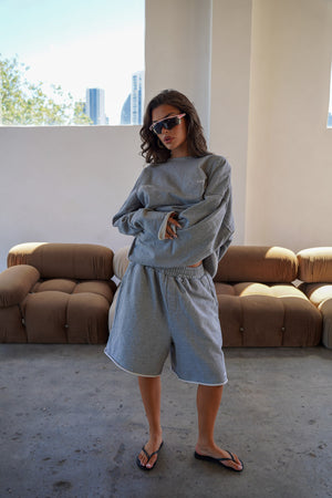 Distressed Crew Heather Grey