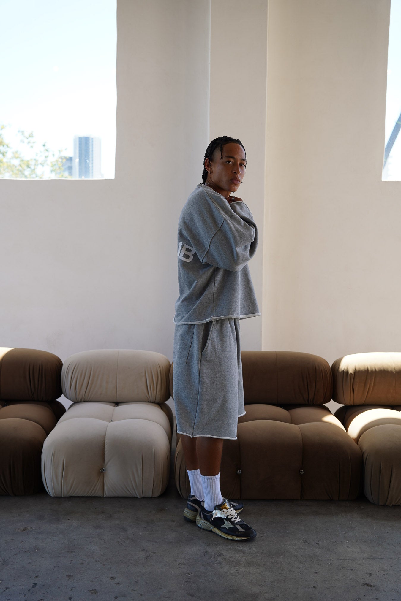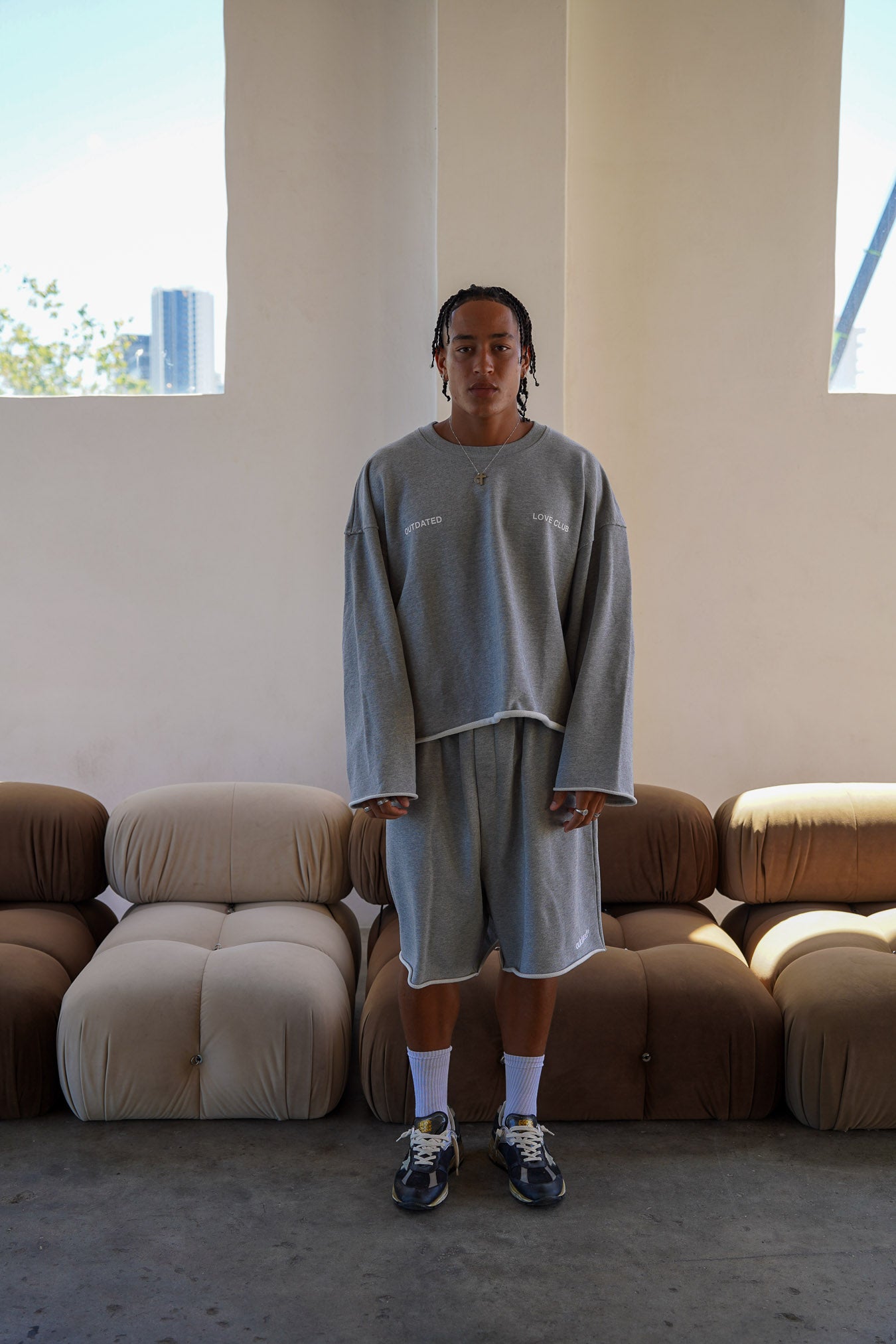 With its cropped fit, relaxed drop shoulders, and distressed hems, this long sleeve crewneck delivers a sleek, contemporary silhouette with an edgy twist. Perfect for effortless layering or standing out on its own, it’s finished with a clean, minimalist back for a balanced and versatile look.