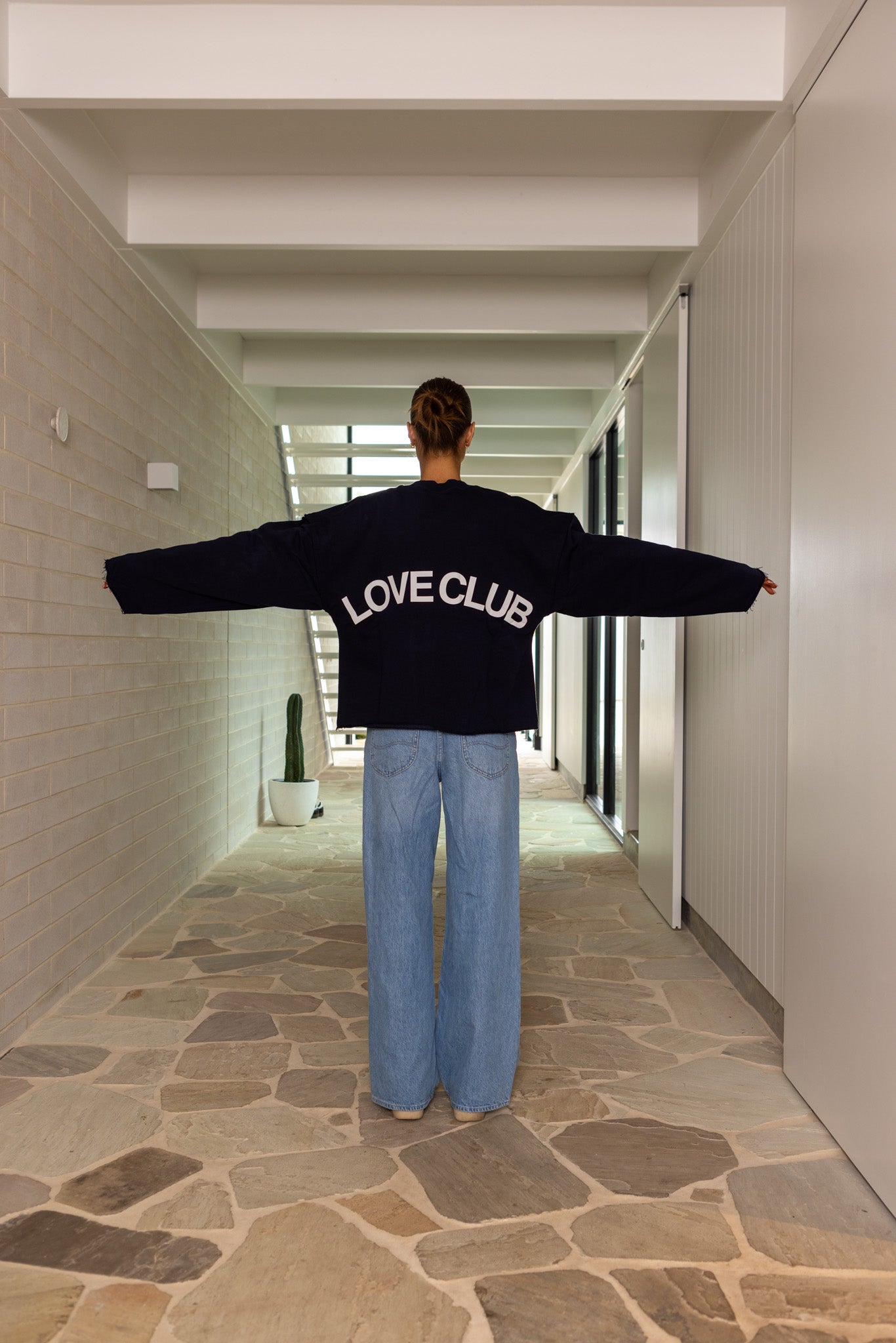 With its cropped fit, relaxed drop shoulders, and distressed hems, this long sleeve crewneck delivers a sleek, contemporary silhouette with an edgy twist. Perfect for effortless layering or standing out on its own, it’s finished with a clean, minimalist back for a balanced and versatile look.