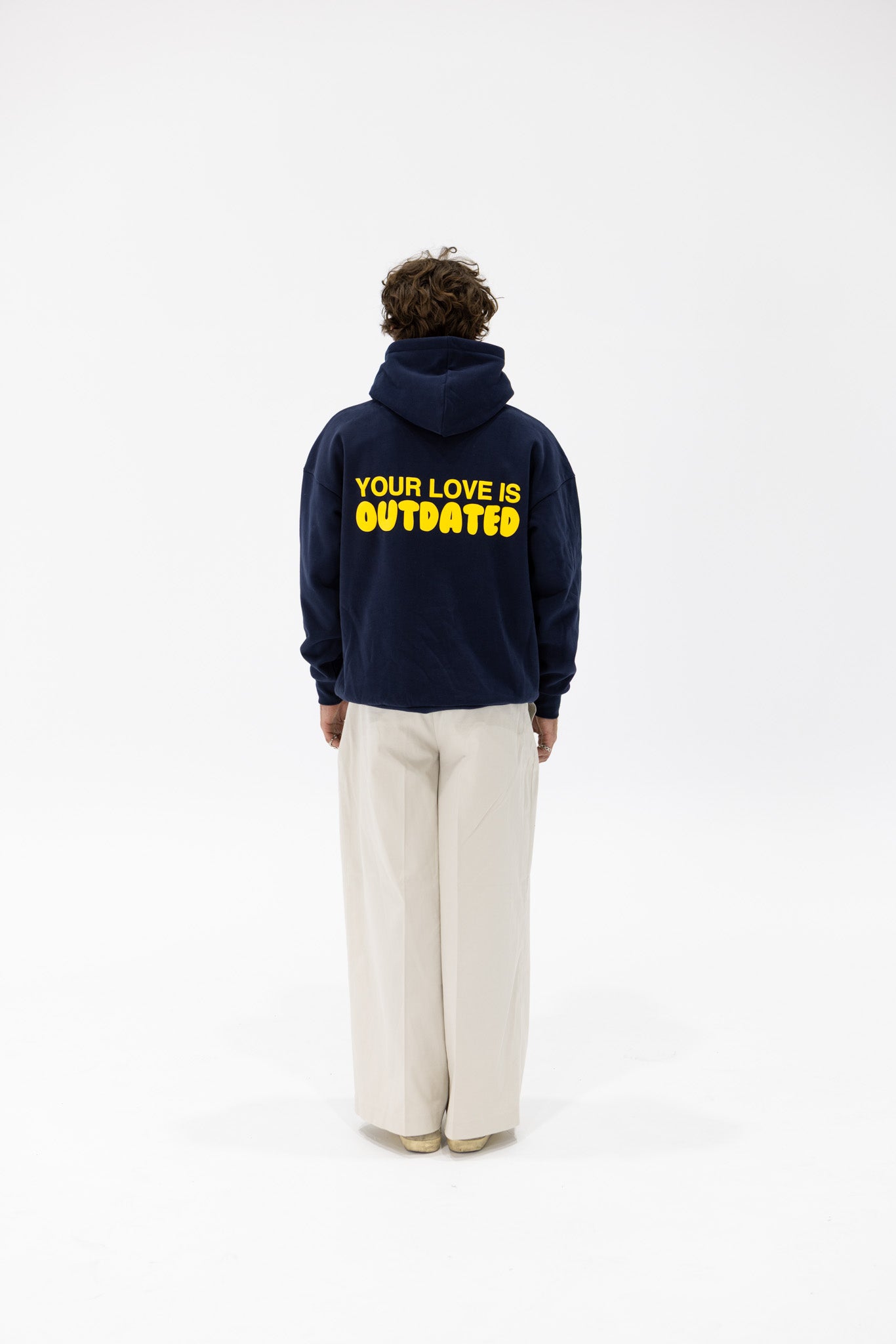 A high-demand staple, this standard-fit premium cotton-poly blend hoodie features a kangaroo pouch pocket and the iconic ‘Your Love is Outdated’ design on the back. Comfort meets timeless style—don’t miss out.