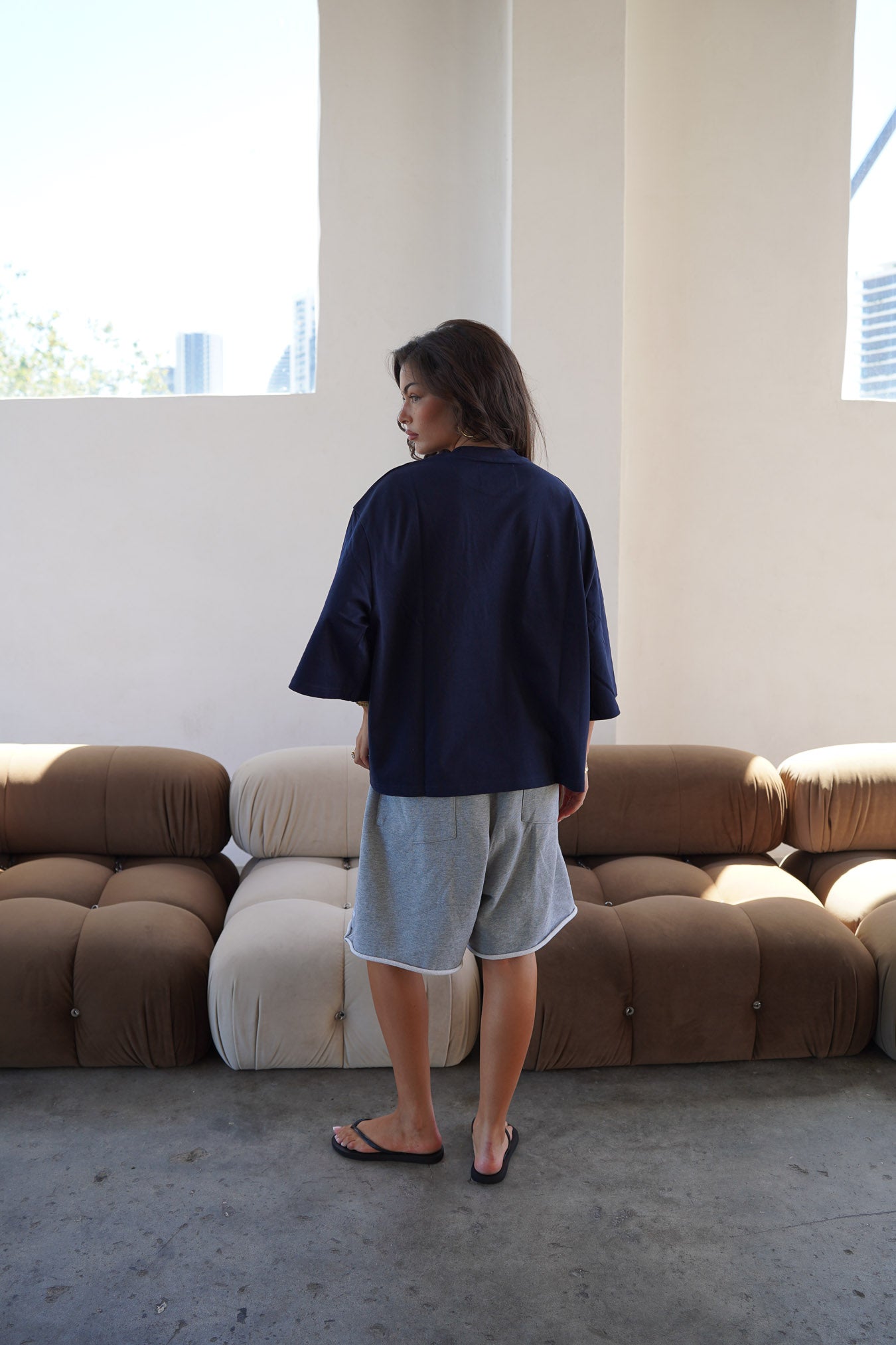 With its cropped fit and relaxed drop shoulders, this tee delivers a sleek, contemporary silhouette. Perfect for effortless layering or standing out on its own for a balanced and versatile look.