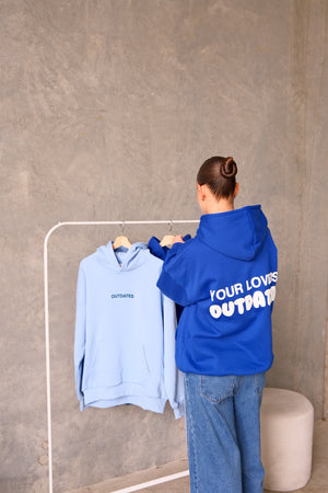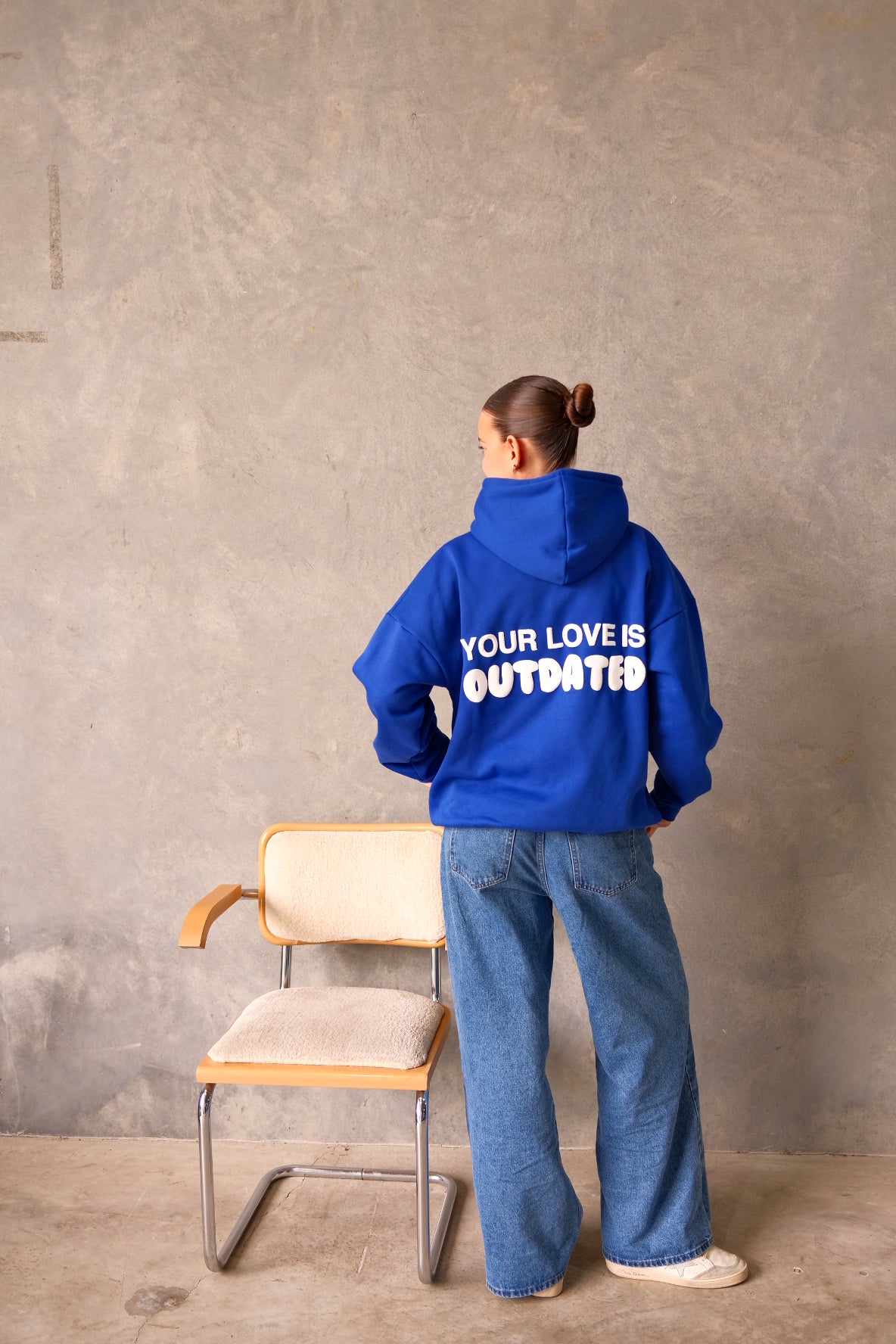 A high-demand staple, this standard-fit premium cotton-poly blend hoodie features a kangaroo pouch pocket and the iconic ‘Your Love is Outdated’ design on the back. Comfort meets timeless style—don’t miss out.