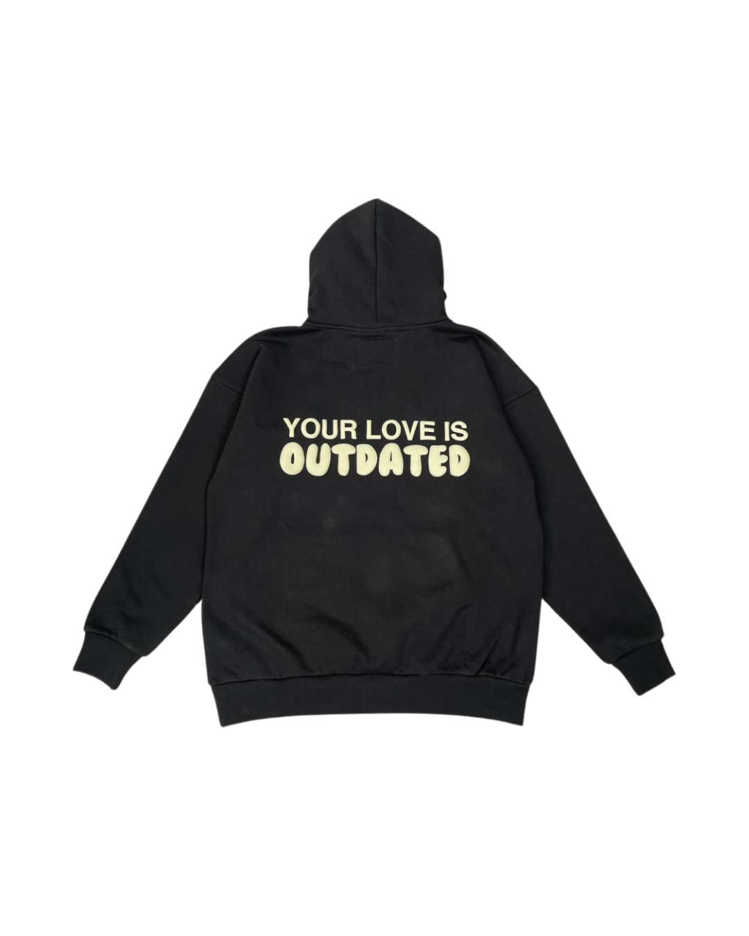 A high-demand staple, this standard-fit premium cotton-poly blend hoodie features a kangaroo pouch pocket and the iconic ‘Your Love is Outdated’ design on the back. Comfort meets timeless style—don’t miss out.