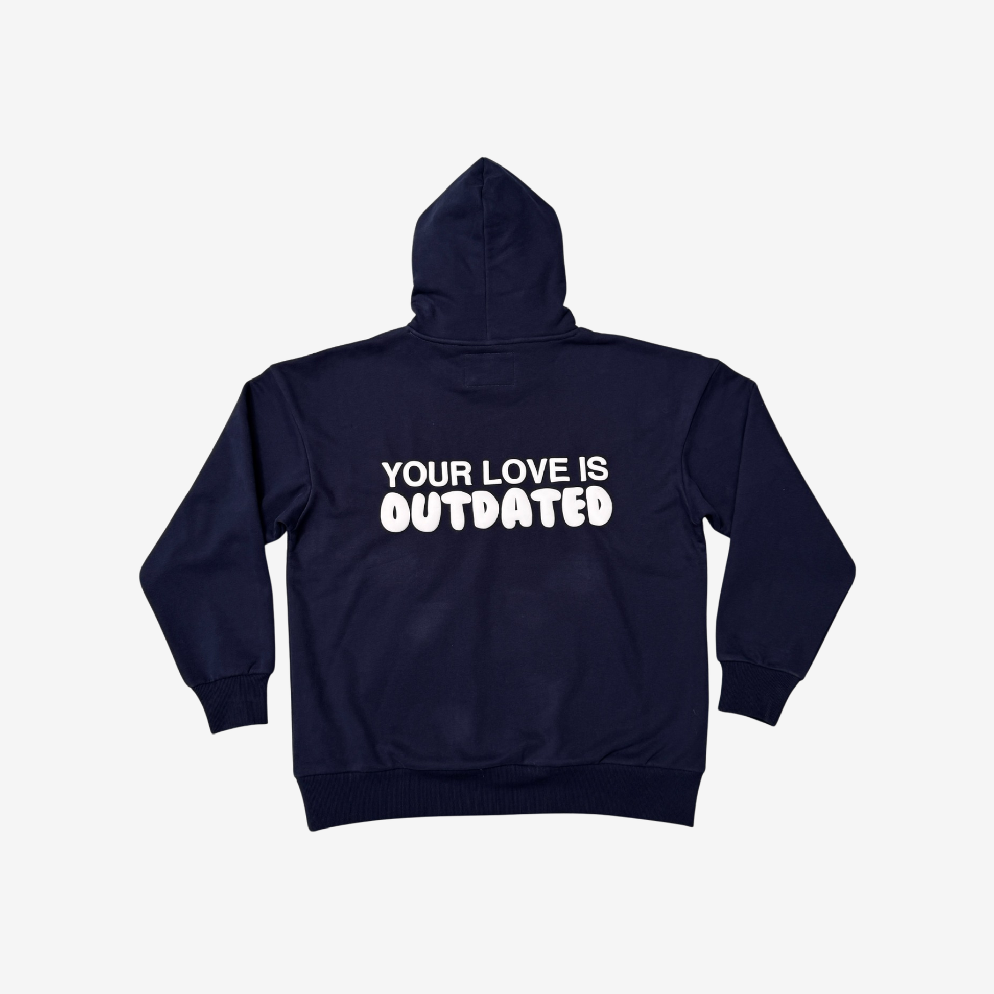 A high-demand staple, this standard-fit premium cotton-poly blend hoodie features a kangaroo pouch pocket and the iconic ‘Your Love is Outdated’ design on the back. Comfort meets timeless style—don’t miss out.