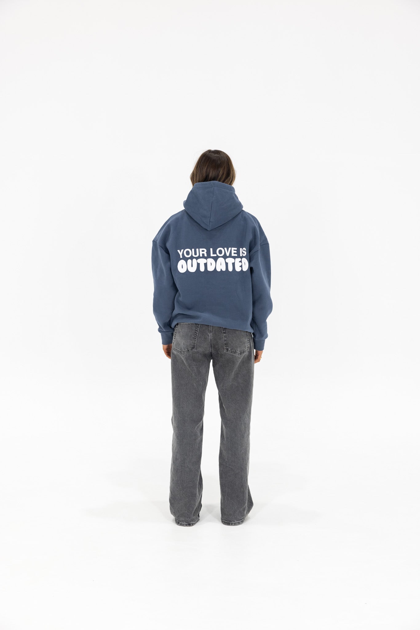 A high-demand staple, this standard-fit premium cotton-poly blend hoodie features a kangaroo pouch pocket and the iconic ‘Your Love is Outdated’ design on the back. Comfort meets timeless style—don’t miss out.